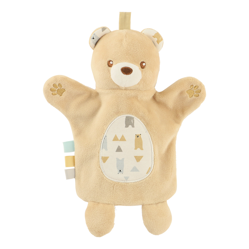 With its charmingly naive teddy bear shape, chubby cheeks, cute ears, and a smiling mouth, it exudes a great sense of affinity. Some styles have a gentle rattle and a teething ring inside, which can help exercise the baby's grasping ability and soothe their emotions. After undergoing a number of strict safety tests, there is no risk of small parts falling off, making it a reassuring playmate to accompany the baby's growth.