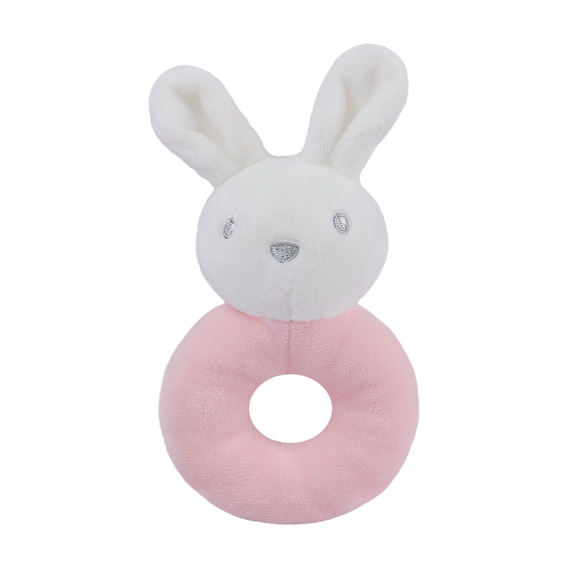 The "Rabbit Rings the Bell" plush toy is made of soft short-fur fabric and safe PP cotton, with a delicate and skin-friendly touch that cares for the baby's tender skin. It features an adorable long-eared rabbit design, accompanied by a jingle bell that can sway. The clear ringing sound can attract the baby's attention and help exercise their hearing and responsiveness.